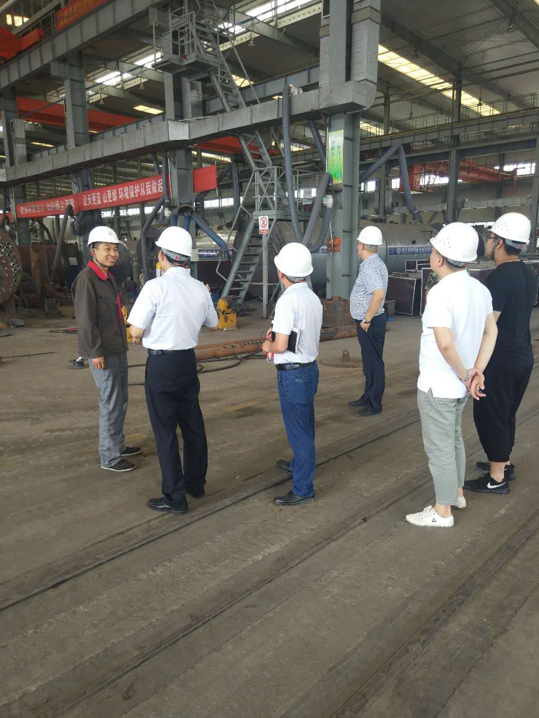 孙院长和贾院长认真听取旭阳经理对车间的介绍,互相交流着。
