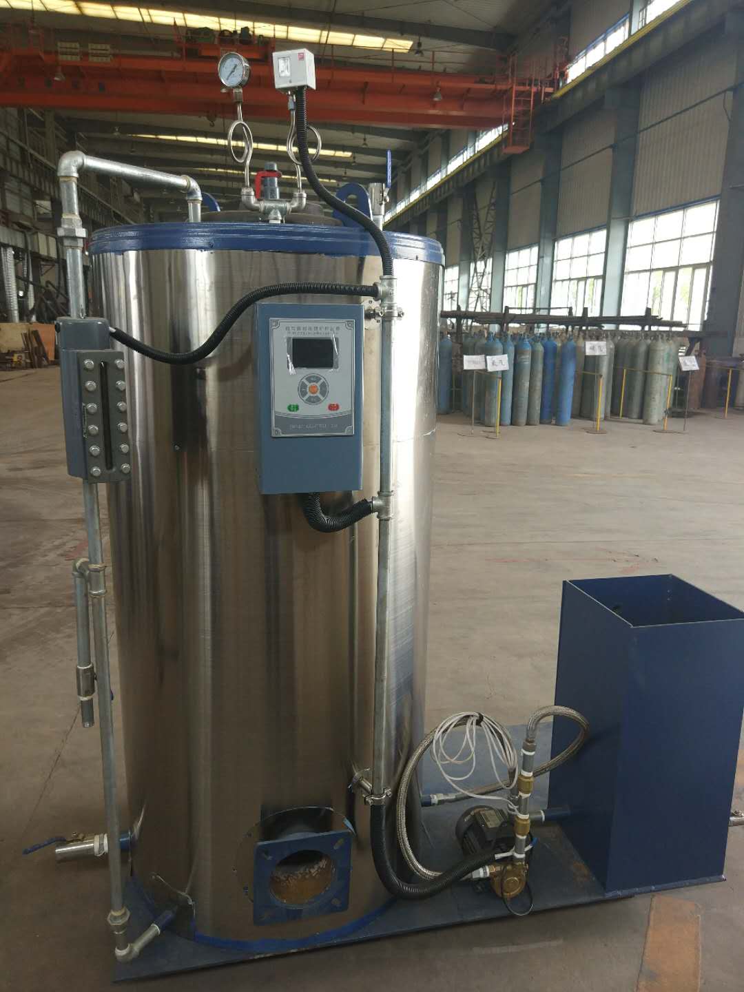 旭阳锅炉经理给孙院长和贾院长介绍新型的仪器,电脑智能控制器
